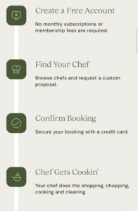 Hosts have access to a curated list of chefs, complete with transparent pricing, flexible scheduling, and reviews. Once matched with a chef, you’ll work together to design a custom menu that fits your taste, budget, and any dietary needs. From vegan to soul food, small bites to a five-course meal—every experience is built around you.
